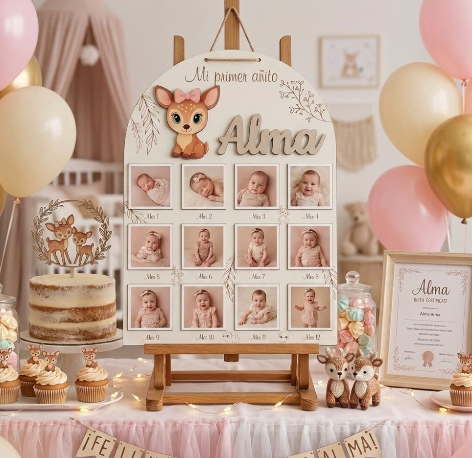 Desde su primer mes hasta el gran día de su primer cumpleaños, este letrero personalizado te permite revivir cada etapa.