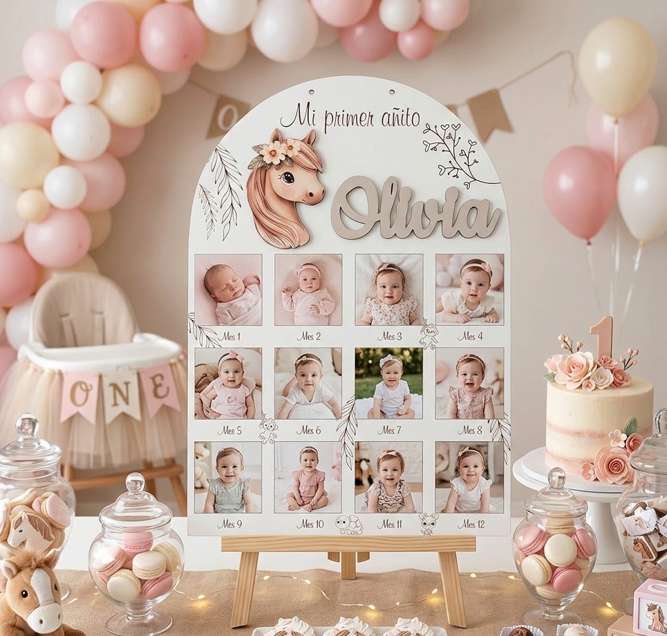Desde su primer mes hasta el gran día de su primer cumpleaños, este letrero personalizado te permite revivir cada etapa.